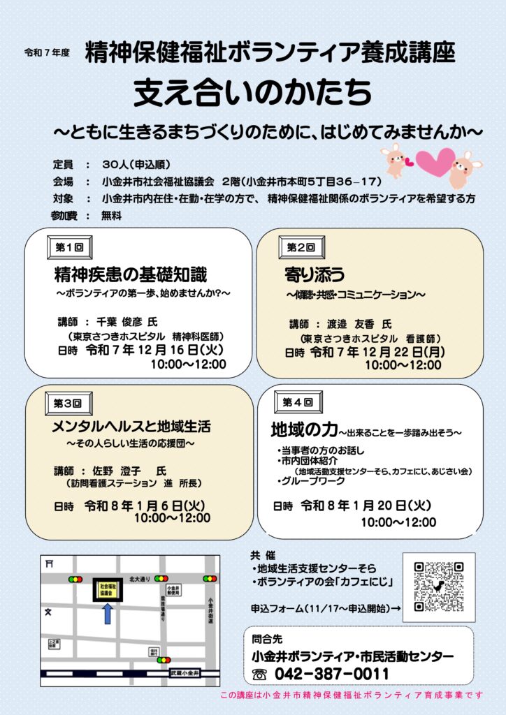 問合先:小金井市社会福祉協議会 小金井ボランティア・市民活動センター ☏ 042-387-0011