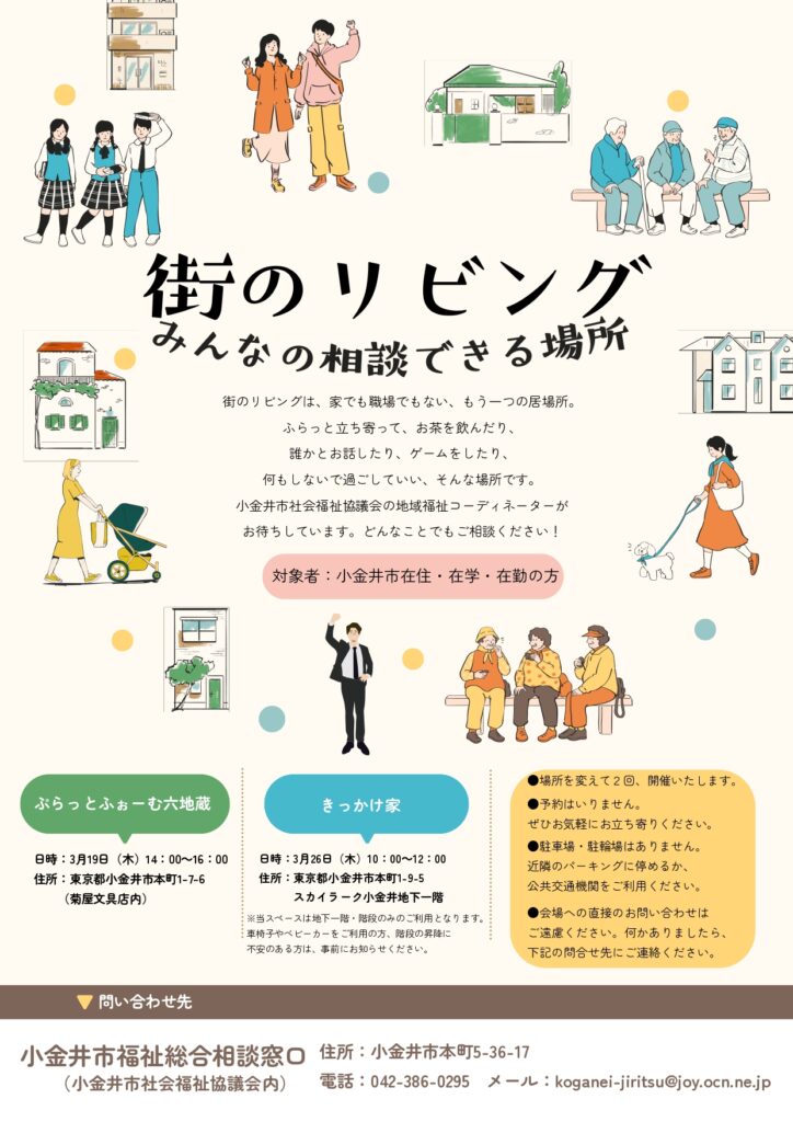 小金井市社会福祉協議会の地域福祉コーディネーターがお待ちしております。どんなことでもご相談してみてください。